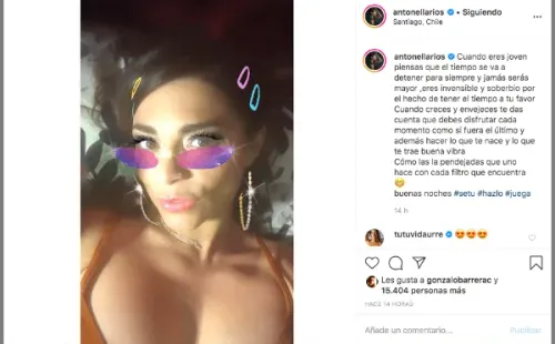 Antonella entonces reemplazó la publicación con una imagen en la que juega con un filtro de lentes, y sobre la que escribió que “Cuando creces y envejeces te das cuenta que debes disfrutar cada momento como si fuera el último y además hacer lo que te nace y lo que te trae buena vibra”.