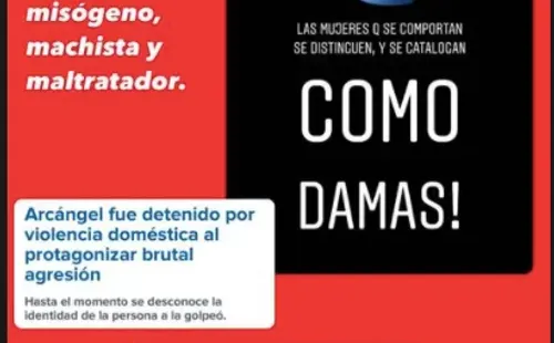 “@arcangel quién te preguntó a vo, ridículo, misógeno, machista y maltratador”, cuestionó Larraín, reuniendo en una sola imagen la polémica publicación del reguetonero con titulares que consignaban cómo el mismo intérprete de “Payaso” fue detenido por violencia doméstica.