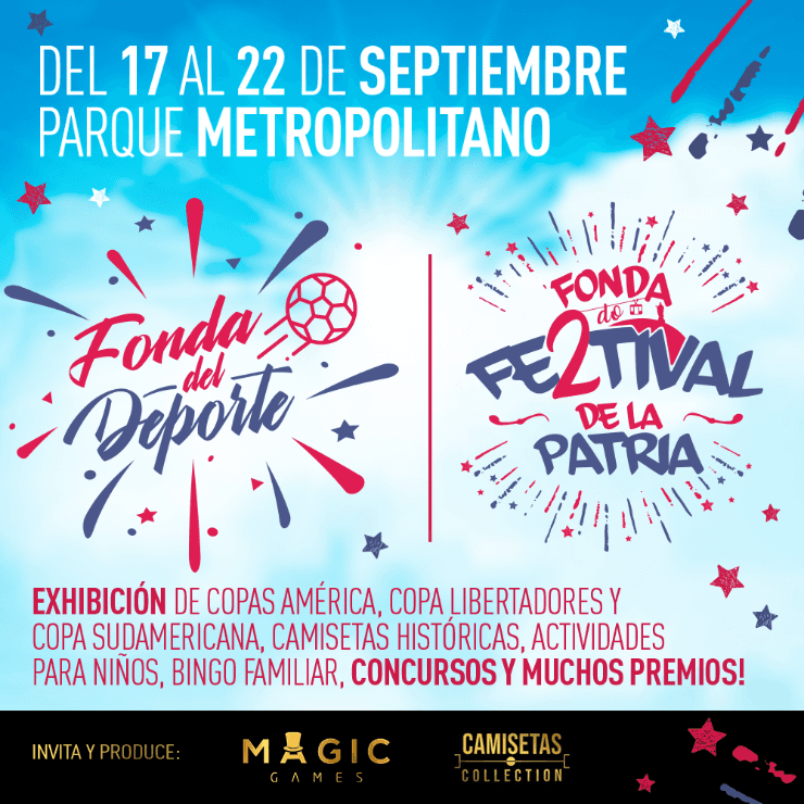 La fonda futbolera del Mago Valdivia estará en la azotea del Festival de la Patria, en el Centro de Eventos Vista Santiago del Cerro San Cristóbal (ex Enoteca, Estación Teleférico Tupahue), entre el martes 17 al domingo 22 de septiembre, de10:30 a 21:00 hrs, y para más información está disponible el sitio web de Magic Games, como del Festival de la Patria, cuyas entradas están a la venta bajo sistema Passline.