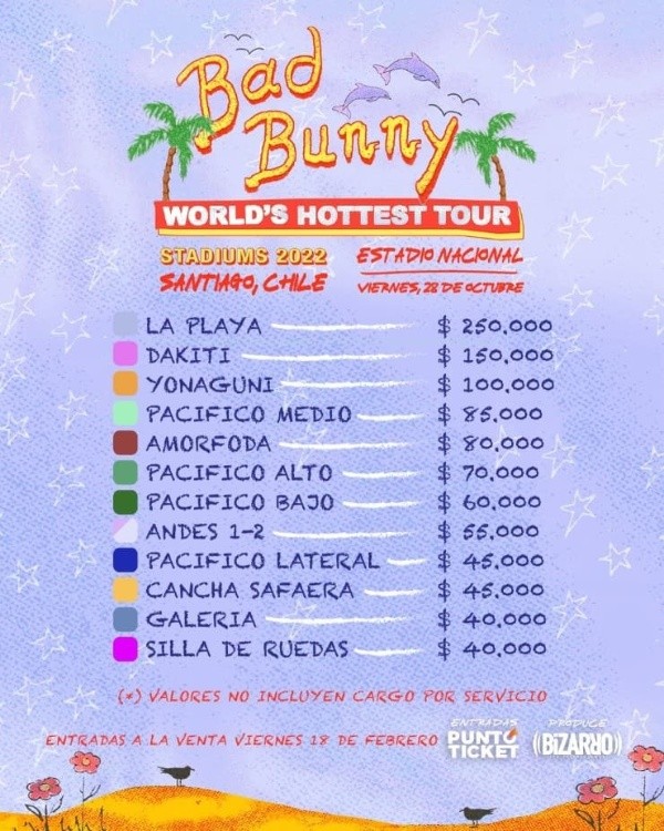 La venta de entradas para el concierto de Bad Bunny en Chile comenzará hoy, viernes 18 de febrero, al medio día a través de Sistemas Puntoticket.