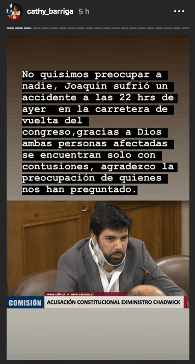 Pero no entregó más detalles sobre la noche previa del incidente. Algo que sí salió a dar la esposa del diputado y alcaldesa de Maipú, Cathy Barriga.