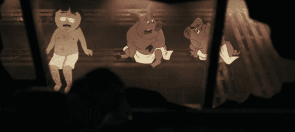 Y por último, pero no menos importante, se vio en una oportunidad aRandy Marsh de South Park en un sauna junto a dos cerdos.