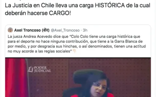 Su mensaje continuó indicando que “Allí el problema como ud dice. La Justicia en Chile lleva una carga HISTÓRICA de la cual deberán hacerse CARGO!“.