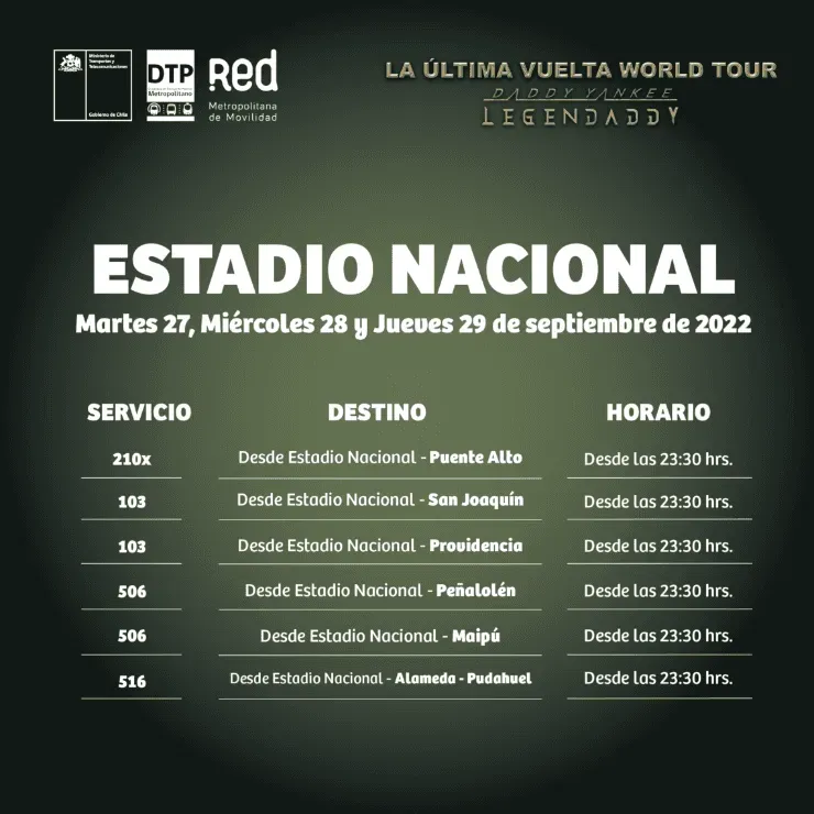 Es importante tener en cuenta que la alcaldesa de Ñuñoa,Emilia Ríos, hizo un llamado a preferir el transporte público para asistir a los conciertos del artista, ya queen los sectores aledaños al recinto deportivo no está permitido estacionar.