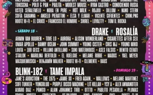 Ahora ya se sabe que la jornada del viernes 17 de marzo será encabezada por BILLIE EILISH y LIL NAS X; mientras que el sábado 18 de marzo tendrá como protagonistas principales a DRAKE yROSALIA; y el domingo 19 de marzo, el día final, será el momento de BLINK-182 y TAME IMPALA.