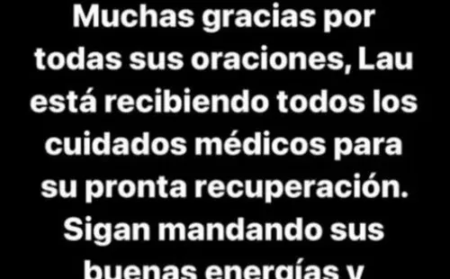 “Les pido por favor que recen por la Lau, necesitamos todas sus buenas energías en este momento”, escribió Angélica. Luego agregó: “hoy le hicieron una encerrona a Cristián y ahora Lau está entrando a pabellón”.