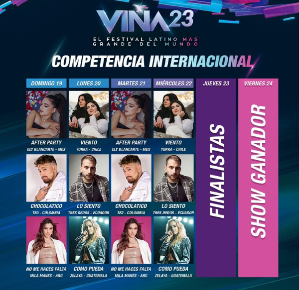 En la competencia internacional del Festival de Viña del Mar 2023, la programación completa es la siguiente: