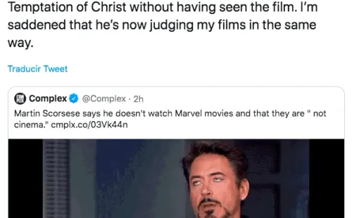 En medio de una entrevista promocional por su más reciente película “The Irishman”, con la revista especializadaEmpire, Martin Scorsese fue consultado por los filmes de la franquicia de Disney, ante lo que respondió que “no las veo. Lo intenté, ¿sabes? Peroeso no es cine“.