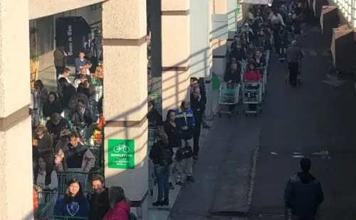 Eso, sí, quienes quieran comprar, deberán tener paciencia, dado que se han formado largas filas, ya que en algunos casos efectivos policiales como militares dejan entrar a un reducido grupo de clientes para hacer sus compras.