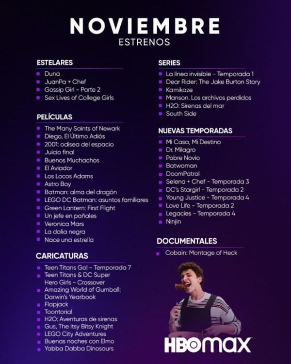 HBO Max ya confirmó que “Dune” llega a su plataforma este noviembre. Todavía no se conoce la a fecha de estreno, pero considerando que estamos llegando a la quincena de noviembre, debe ser dentro de muy pocos días.