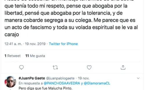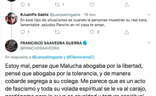 Un usuario le respondió: “Pero diga que fue Malucha Pinto”. Saavedra reaccionó: “Estoy impactado”.
