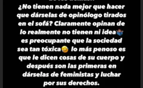 “Lo otro, yo nunca he dicho nada en ‘contra’ de la relación de mi mamá, al contrario, me encanta verla feliz. Sé que no tengo porque dar explicaciones o lo que sea, pero realmente estoy agotada de que hablen sin saber y de que me traten de esa manera, porque mi cuerpo no les hizo nada”, puntualizó.