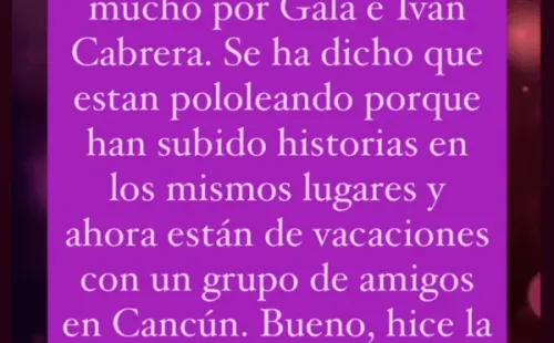 Antes de compartir la declaración de Gala, Gutiérrez expuso que “me han preguntado mucho por Gala Caldirola e Iván Cabrera. Se ha dicho que están pololeando porque han subido historias en los mismos lugares y ahora están de vacaciones con un grupo de amigos en Cancún. Bueno, hice la pega y hablé con ella”.