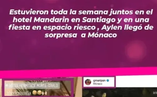 “Aylén Milla y Maripán juntos en Mónaco. Estuvieron toda la semana juntos en el hotel Mandarín en Santiago, y en una fiesta en Espacio Riesco, Aylén llego de sorpresa a Mónaco”, señaló la comunicadora.