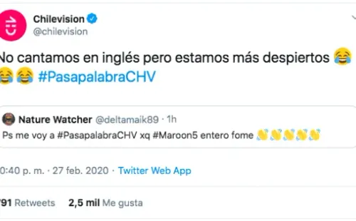 Un usuario indignado con el show de Maroon 5 decidió cambiarse del Festival de Viña del Mar 2020 a “Pasapalabra” en Chilevisión.