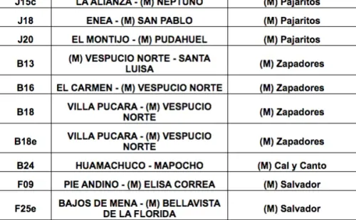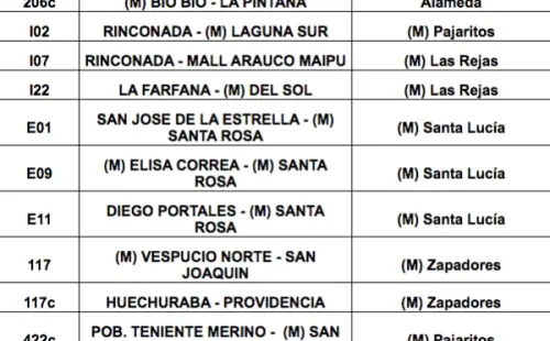 Respecto a los buses de apoyo,habrá243 buses adicionales para reforzar la operación. Serán en total 12 serviciosque permitirán a los usuarios de las comunas de Puente Alto, La Florida, La Cisterna y Maipú tener mayores alternativas para llegar a las estaciones de Metro que están operando.