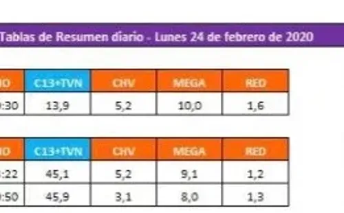 Con una rutina que se extendió entre las 23:43 y las 00:50 horas, Contador promedió un rating conjunto de TVN y Canal 13 que se alzó hasta los 45,9 puntos.
