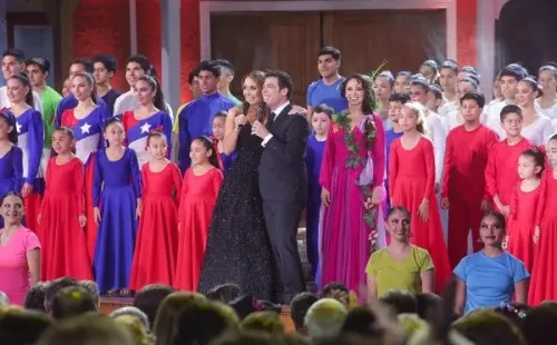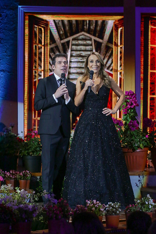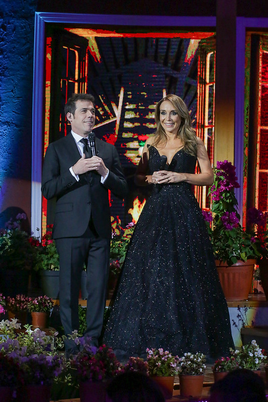 La animadora Karen Doggenweilerdeslumbró a los espectadores del Festival del Huaso del Olmué2020, en su primera jornada, gracias al deslumbrante vestido que presentó.