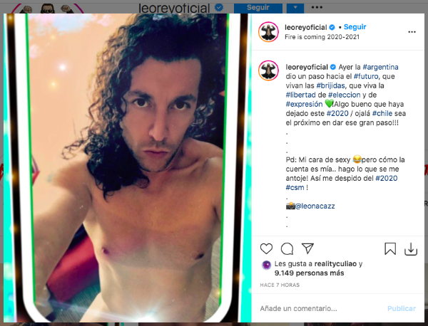 Fue así que el cantante apareciónada menos que en topless y en una particular pose para celebrar el triunfo que conseguido por las mujeres trasandinas en el Congreso.