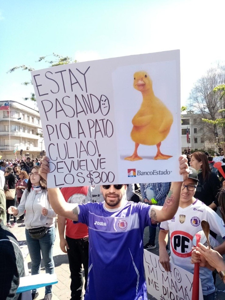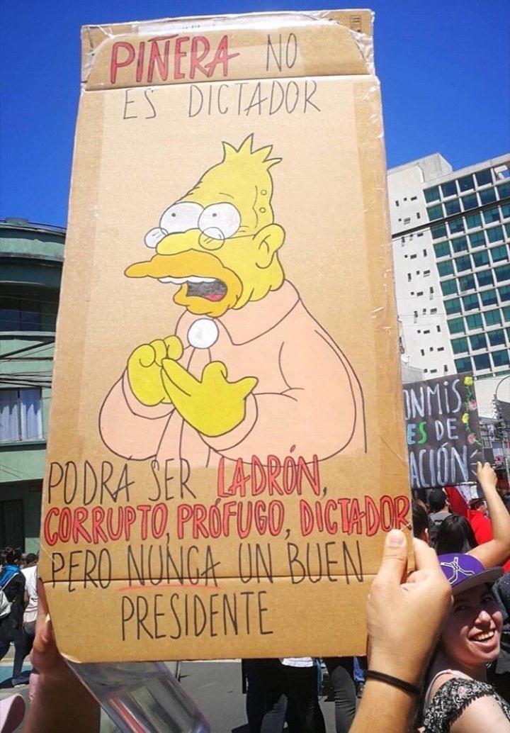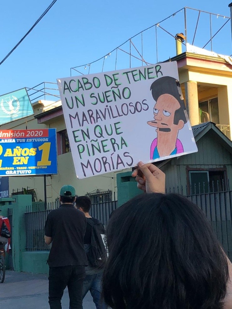 La gente no se queda atrás a la hora de sacar a relucir toda su creatividad para crear los más diversos e ingeniosos carteles con el fin de demostrar el descontento social durante la crisis que enfrenta Chile.