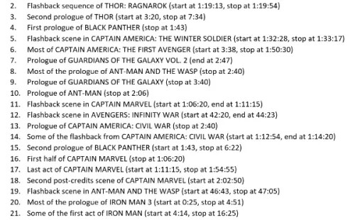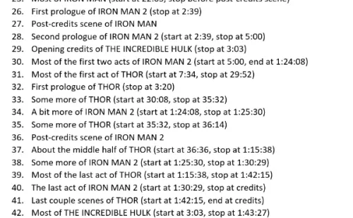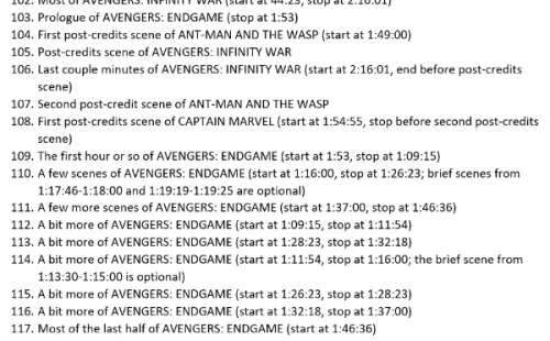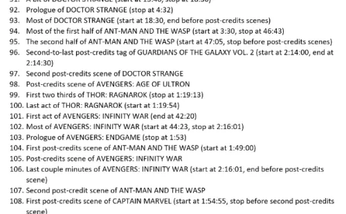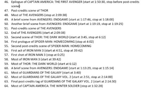 En un segundo tuit, este usuario que también se identifica como “beautiful internet weirdo” (hermoso rarito de internet) advirtió que “obviamente, esto cubre las 23 películas del MCU hasta el momento. No las series de ABC y Netflix, ni cortometrajes o escenas eliminadas”.