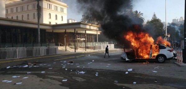A eso se sumó que en el exterior del recinto se incendiaron sietevehículos y los pasajeros tuvieron que ser evacuados del lugar, por el costado que da al estero Marga Marga.