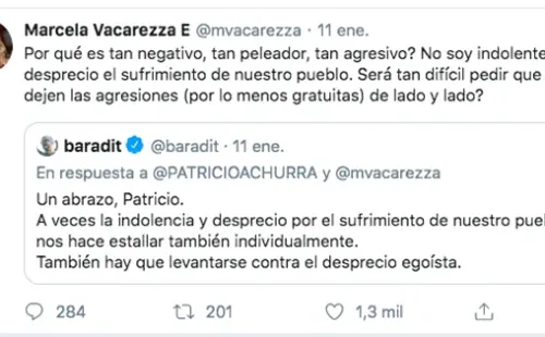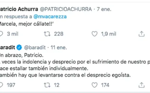 La teleserie que se vivió la semana pasada entre Marcela Vacarezza y Patricio Achurra en Twitter, el fin de semana sumó otro capítulo, con la entrada de un nuevo actor al drama: el escritor de 50 años Jorge Baradit.