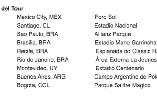 El grupo anunció este martes una serie de nuevas fechas para su gira latinoamericana, entre las que se cuenta la visitapor Chile, además de4 paradas en Brasil y otras en México, Argentina, Colombia y Uruguay.