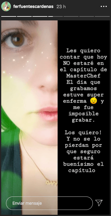 A través de las historias de Instagram, la profesional de la gastronomía se justificó, revelando las verdaderas razones por las que no estuvo en el programa de Canal 13. De hecho, lo advirtió en la previa a la emisión del programa.