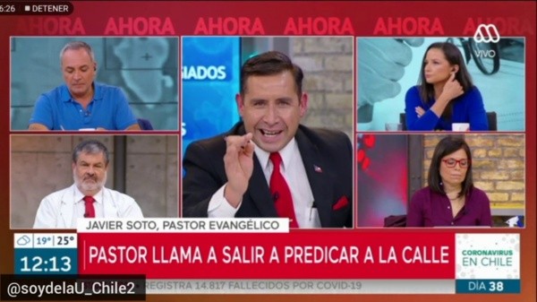 Mega provocó toda una polémica por invitar al siempre polémico pastor Javier Sotoen medio de la pandemia por el coronavirus, por lo que fue blanco de más de mil denuncias en el Consejo Nacional de Televisión. A la gente no le gustó para nada la invitación que se le hizo al religioso, quien en una actitud que fue posteriormente tildada de “irresponsable” se mostró en contra de las medidas de aislamiento social.
