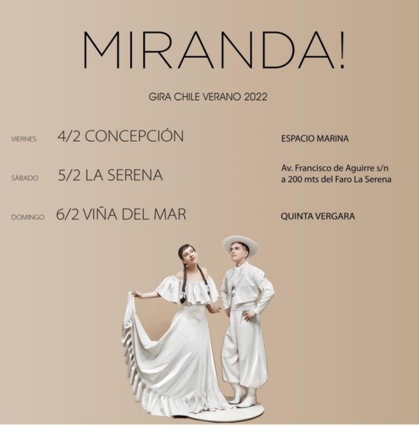 El dúo argentina Miranda! llega a Chile este febrero con la propuesta musical que sedujo a chicos y grandes desde comienzos de milenio, en un espectáculo que cuenta con todas las medidas de seguridad necesarias y el aval de la seremi y los municipios locales.
