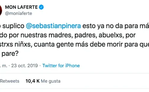A eso se sumó que ahora hizo dos claros llamados al Presidente Sebastián Piñera, el primero pidiéndole que renuncie, mientras que en el segundo le lanzó una directa pregunta.