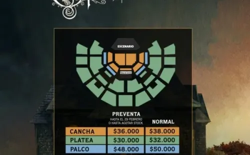 Posteriormente, durante la ventageneral los precios se elevarán, con los tickets para Platea a 32.000 pesos,Cancha a 38.000 yPalco a 50.000.