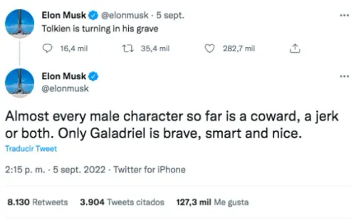 “Tolkien se está revolcando en su tumba”, lanzó en primera instancia Musk, por medio de su cuenta en Twitter.