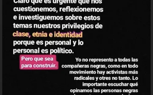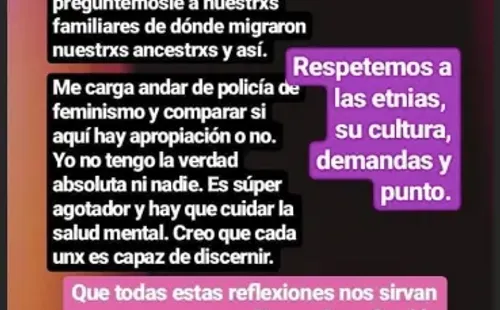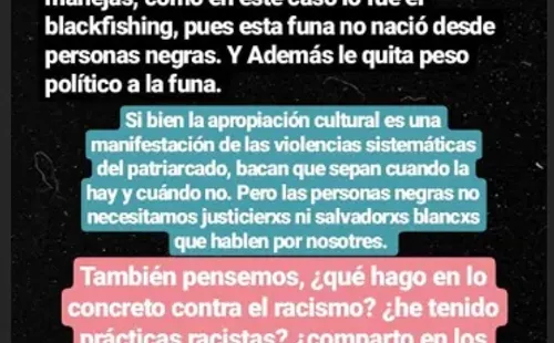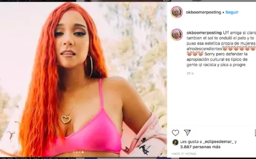 “Uff amiga si claro, tambien el sol te onduló el pelo y te puso esa estetica propia de mujeres afrodescendientes������������������ Sorry pero defender la apropiación cultural es tipico de gente ql racista y pica a progre”, escribieron en la publicación, que ahora tiene los comentarios bloqueados.