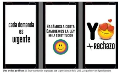 Según informó La Tercera, “Hagámosla Corta” es el eslogan principal de la propuesta que la presidenta del partido, Jaqueline Van Rysselberghe, le mostró a sus compañeros diputados y que apunta a que no es necesaria la creación de una nueva carta magna, sino que sólo hay que cambiar leyes para responder a las demandas sociales del estallido social.