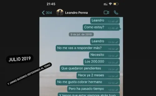 La molestia se debe a una supuesta deuda de 200 mil pesos que Penna nunca habría pagado y de la que incluso habría rehuido, incluso sin responder mensajes de Whatsapp que le recordaban el saldo pendiente, como los que se vieron en una segunda historia.