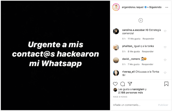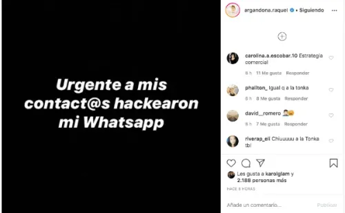 “Urgente a mis contact@s hackearon mi Whatsapp”, escribió la madra de Kel Calderon y, una vez más tal como Tomicic, no entregó más detalles de lo acontecido.