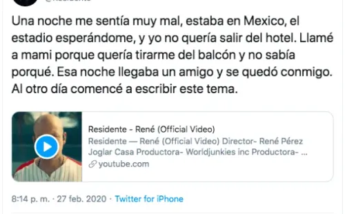 Un alarmante mensaje apareció esta semana en las redes sociales de Residente. La publicación deba cuenta de una experiencia extrema que tuvo el músico, a la vez que lanzaba su más reciente tema, autizado simplemente como “René”.