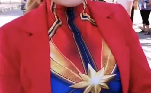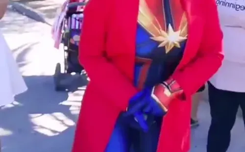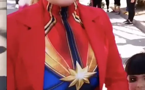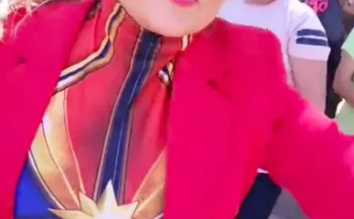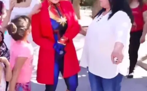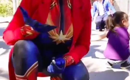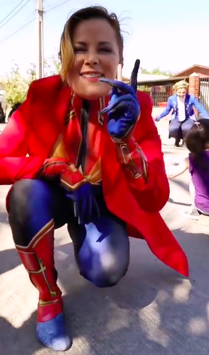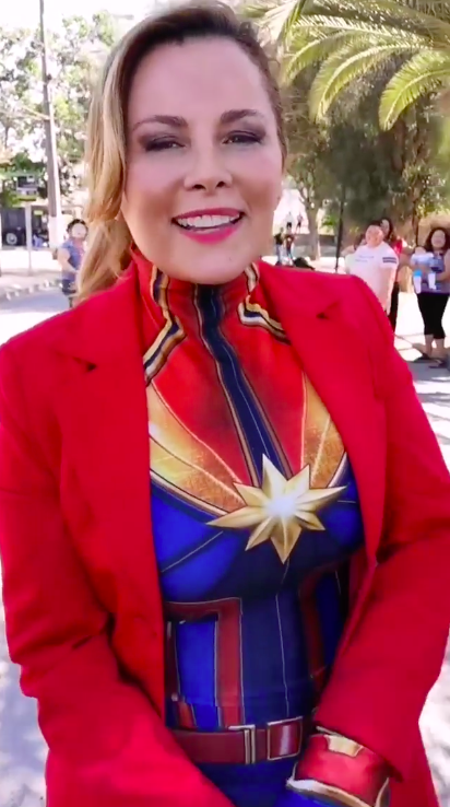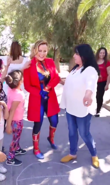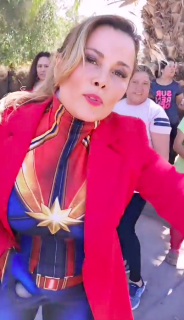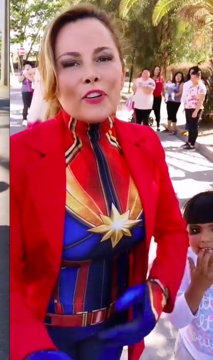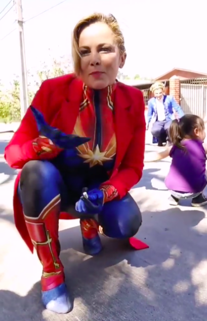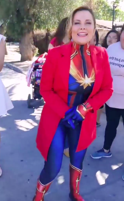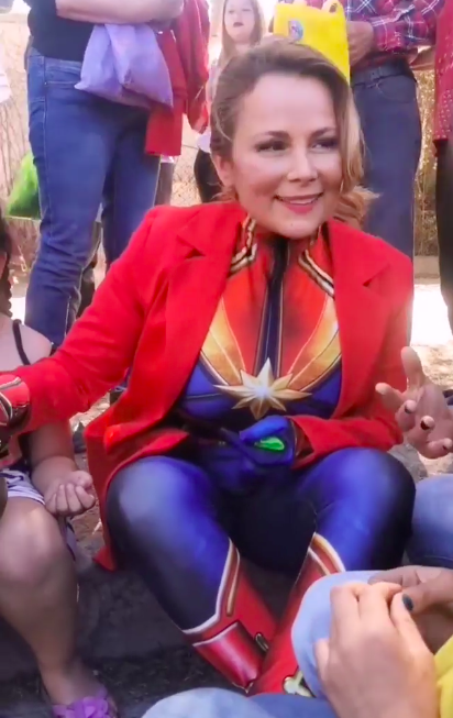 Pero la dinámica no estaría completo sin disfraz, por lo que la autoridad sacó a relucir su mejor atuendo de “Capitana Marvel” para participar en las actividades.