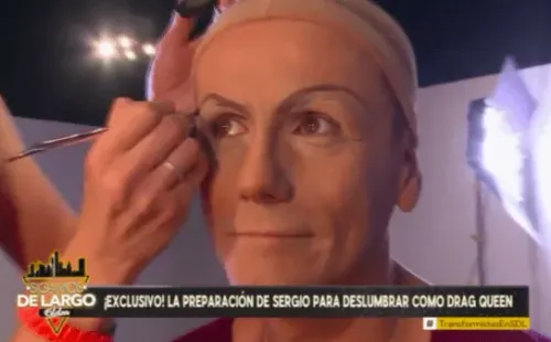 El animador no tuvo inconvenientes en someterse a una larga sesión de maquillaje, ponerse tacos, vestido y peluca para plegarse con las invitadas del día.