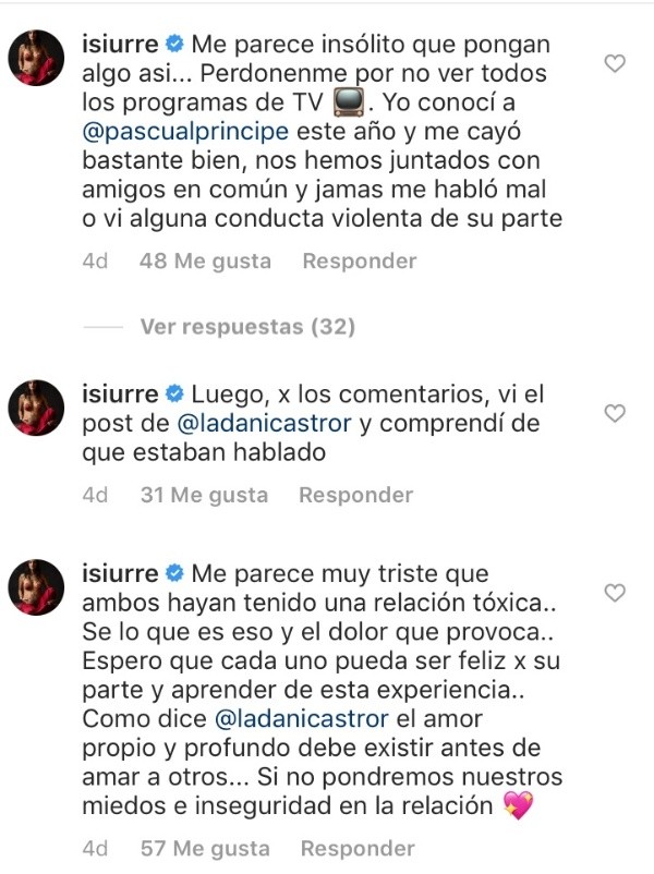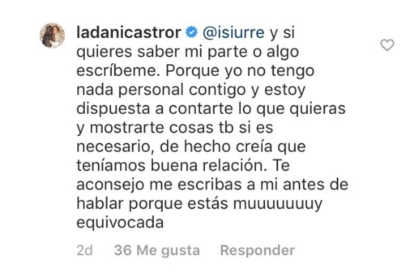 Cuando Glamorama reportó tal situación en su Instagram, Urrejola salió a justificarse en los comentarios y a la vez opinar sobre lo que había ocurrido con Castro: