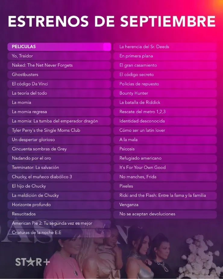 Este jueves se inició septiembre, el noveno mes del año que además de llegar con las Fiestas Patrias y la primavera, trae una gran cantidad de estrenos en las diferentes plataformas de streaming.