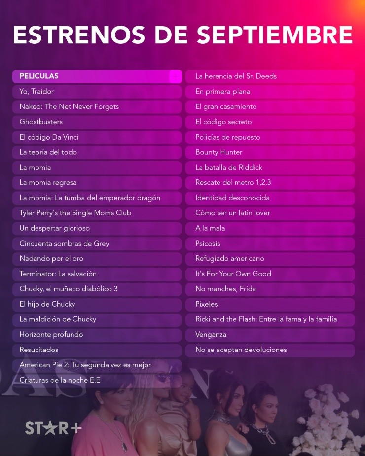 Esta miércoles, Star Plus dio a conocer una vez más la larga lista de películas, series y documentales que debutarán durante este nuevo mes.