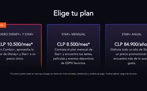 En el caso de quienes quieran Star+ y Disney+, el plan mensual será de $10.500 pesos.