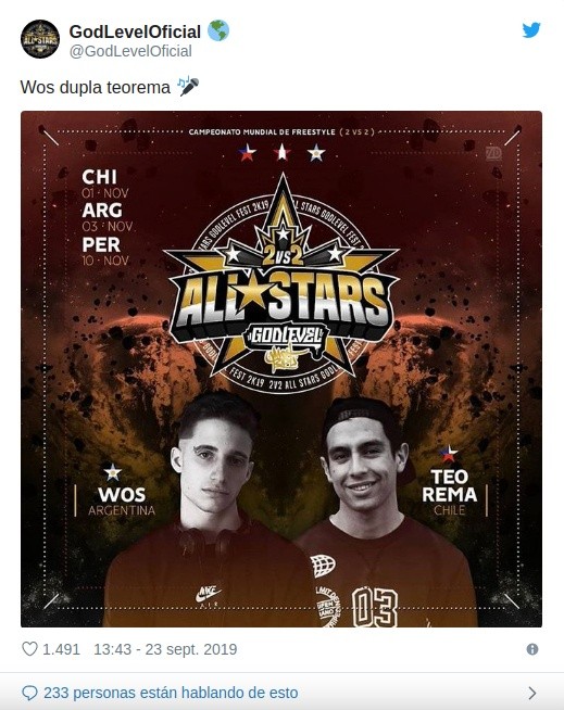 Y es que se confirmó por parte de God Level que Teorema hará dupla con Wos en God Level All Stars 2 vs 2. Esto a través de sus redes sociales.
