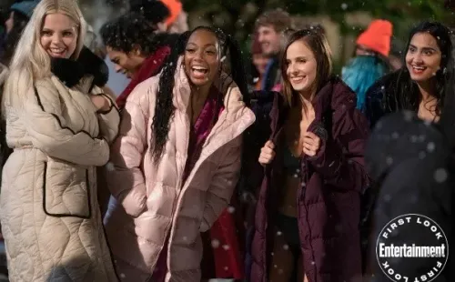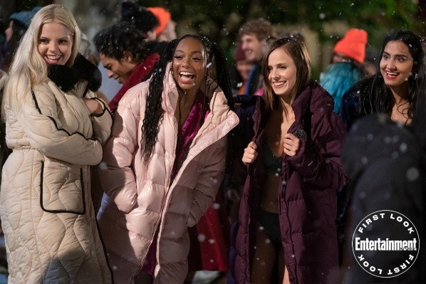 Una de las fotografías compartidas por Empire, muestraa las protagonistas disfrutando bajo la nieve junto a más gente, mientras que la segunda imagen se ve que están mirando algo bastante sorprendidas.