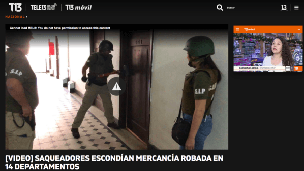 Justamente desde el segundo ejemplo de las críticas emanarondos denuncias esta semana. Una fue el caso expuesto por el usuario de Instagram @isjustkode, en que el reportaje de T13 sobre “saqueadores escondían mercancía robada en 14 departamentos”, emitido el martes 12 de noviembre recién pasado, ilustró la información con imágenes correspondientesa otro trabajo del informativo de Canal 13, sobre el aumento de la prostitución en el centro de Santiago, publicado el 29 de enero de 2018.