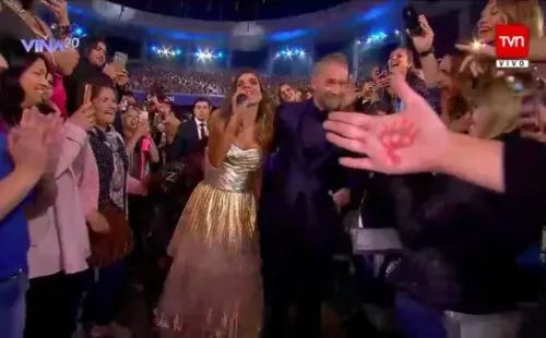 Los animadores María Luisa Godoy y Martín Cárcamo presentaban a Pablo Alborán en la tercera jornada del Festival de Viña del Mar, cuando se coló en la transmisión un nuevo momento de protesta por los daños oculares provocados por agentes del Estado durante el estallido social.