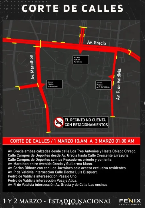 Por lo mismo, a días de que se presente en territorio nacional, la productora a cargo del evento reveló las recomendaciones previas al show, la cual incluye información sobre los cortes de calle para esas jornadas.